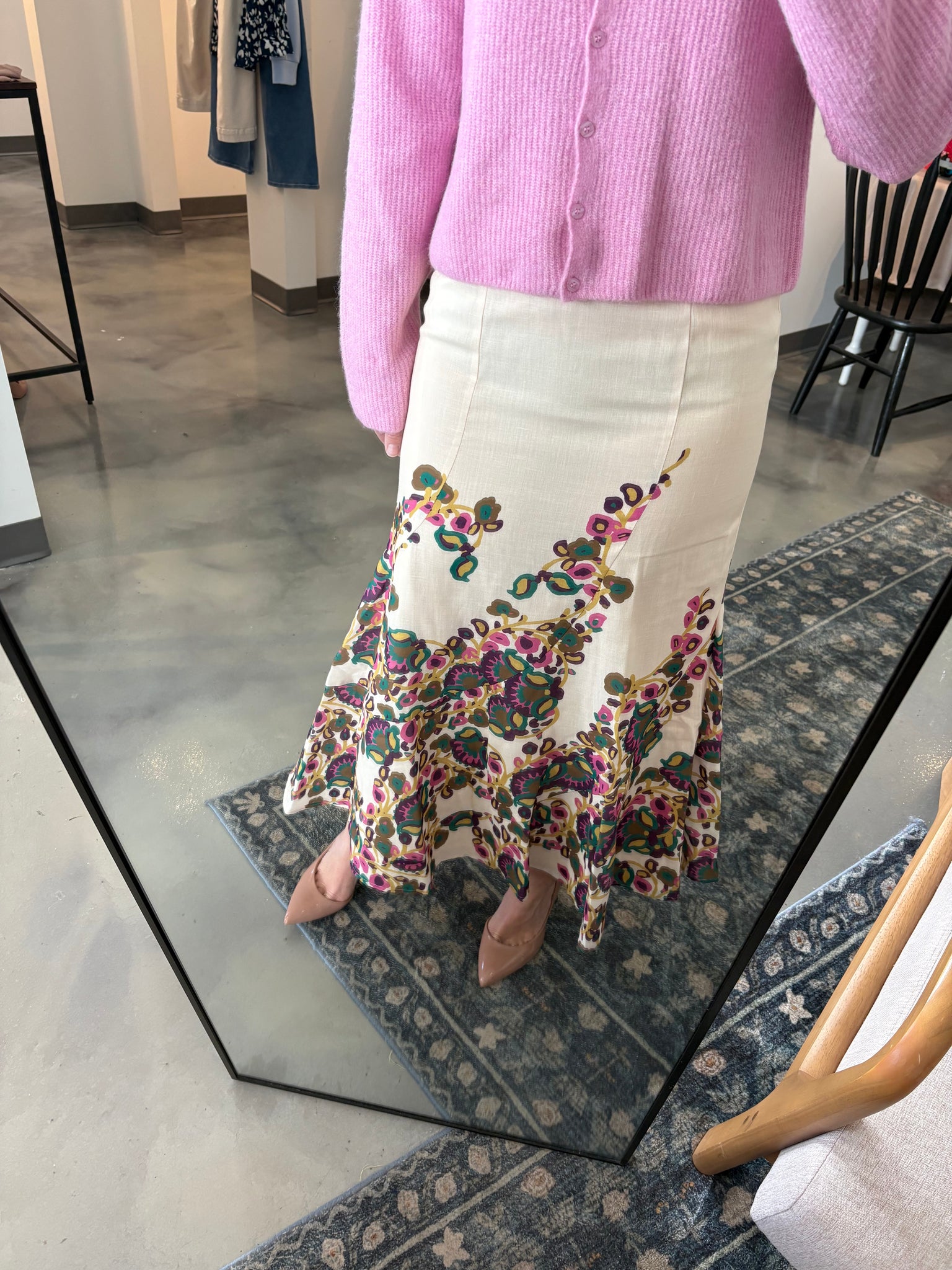 Cream Multi Purple Floral Skirt