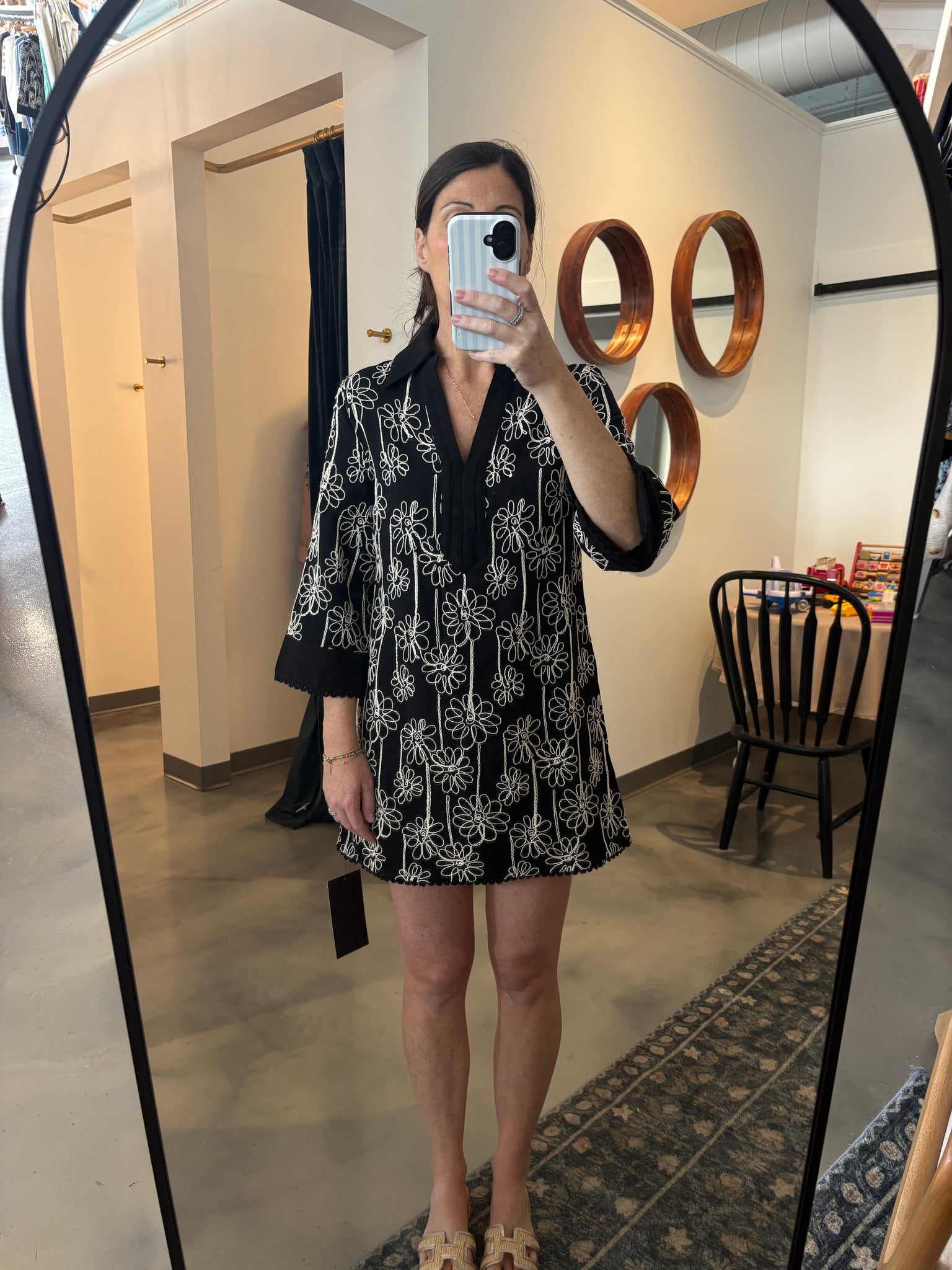 Black Embroidered Collar Dress