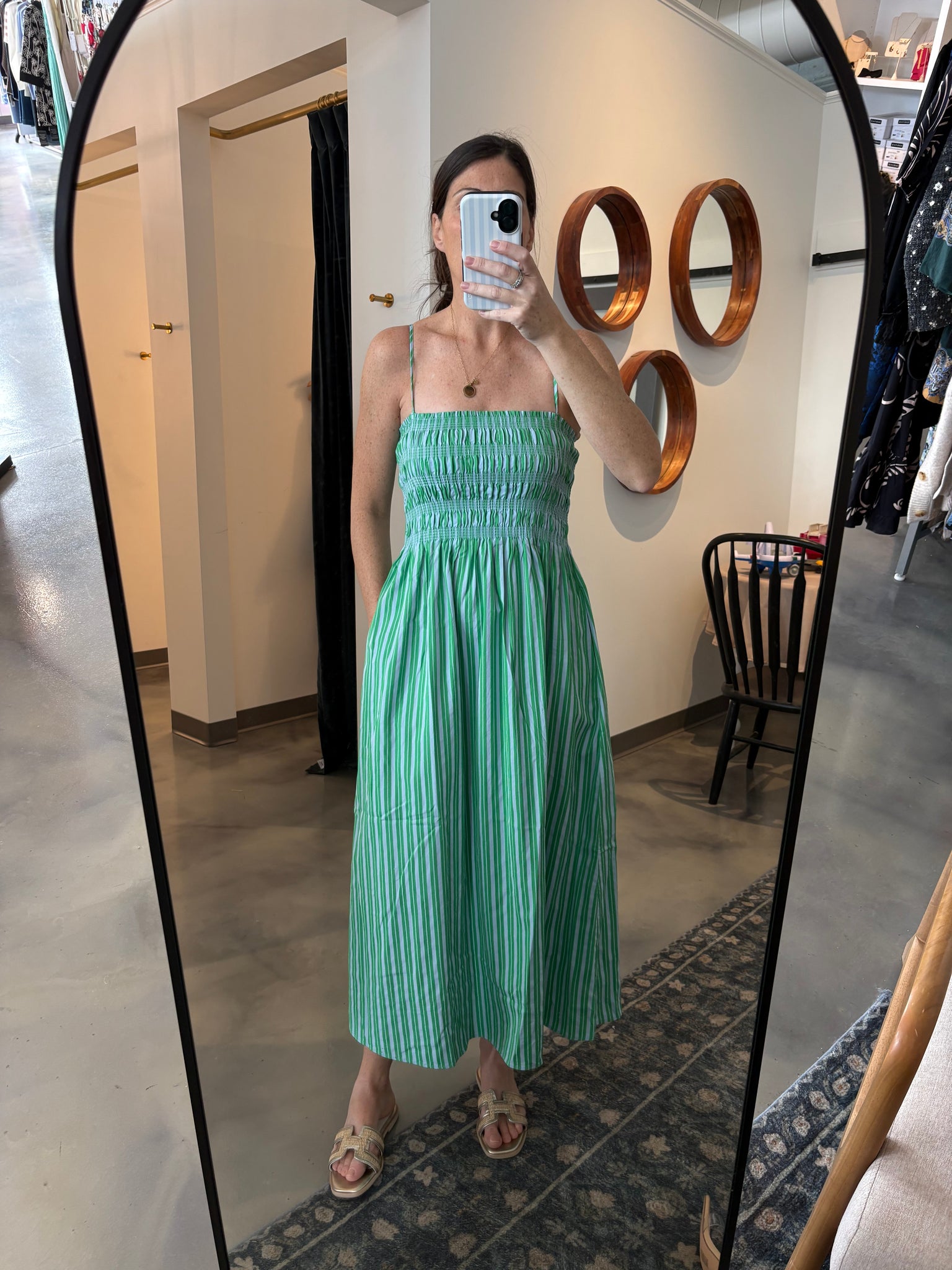Green & Blue Stripe Ruched Dress